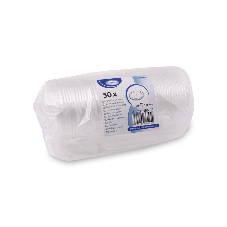 Úvod » Riad » Poháriky » PLAST. POHÁRIKY(PET) A VIEČKA » Viečko (rPET) s krížovým otvorom priehľadné Ø95mm [50 ks]